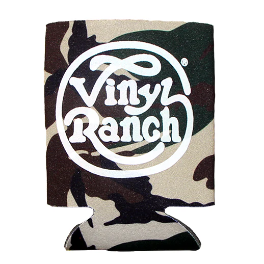 "Vinyl Ranch Camo Koozie Pack" is a set of 2 classic koozies featuring the Vinyl Ranch logo. Includes 1 black koozie, and 1 camo print koozie.